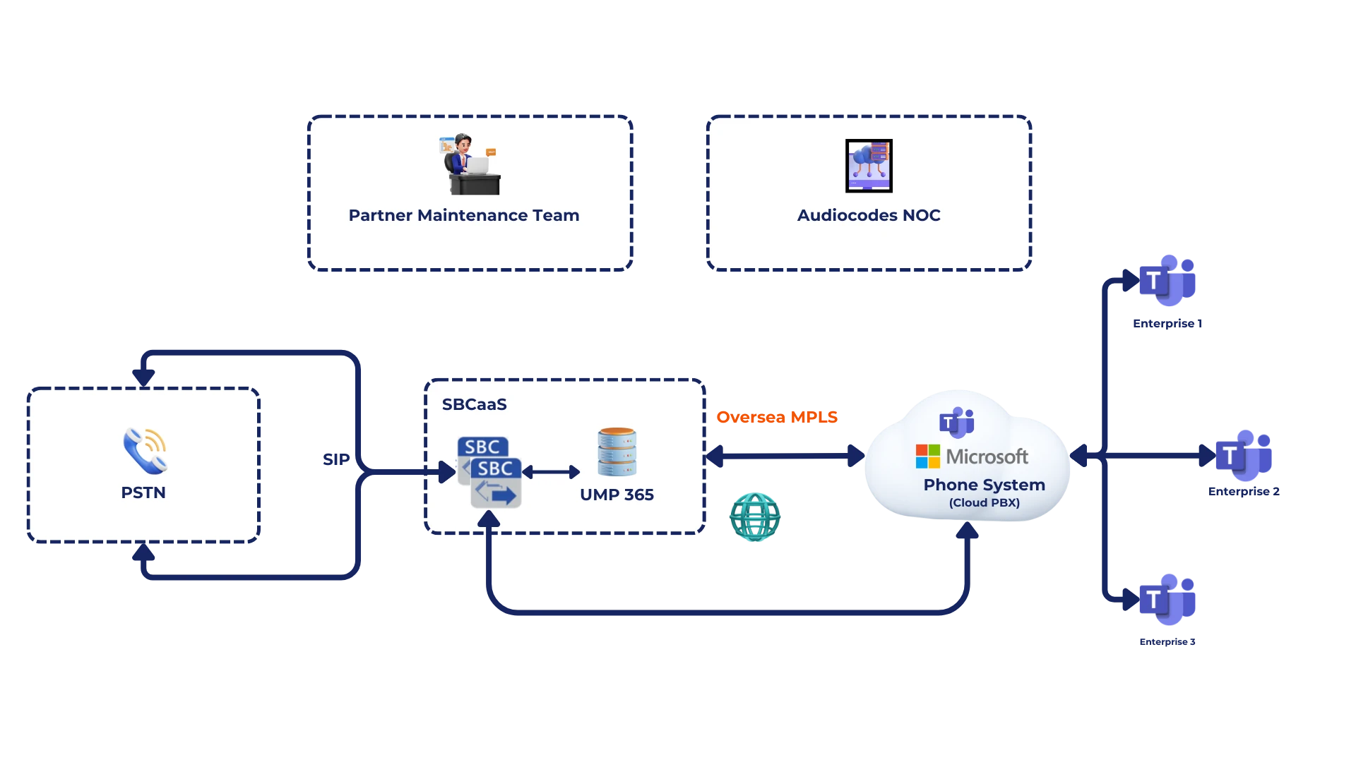 The current Microsoft Teams voice solution allows users to connect to the enterprise SBC over the Internet and place outgoing calls through the SBC’s connected PSTN. This capability not only extends Microsoft Teams beyond an internal collaboration tool but also addresses the enterprise telephony requirement. As a result, Many organizations no longer need to deploy a separate IP-PBX system. This significant IT management advantage has driven many large enterprises to migrate from traditional IP-PBX platforms to Microsoft Teams.